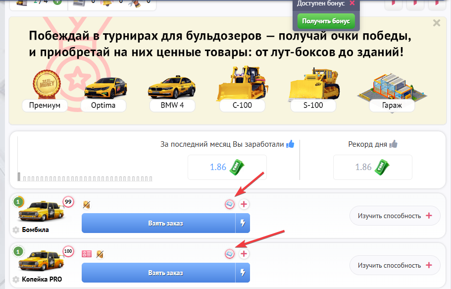 Отображение бонуса на технике также присутствует как в Гараже