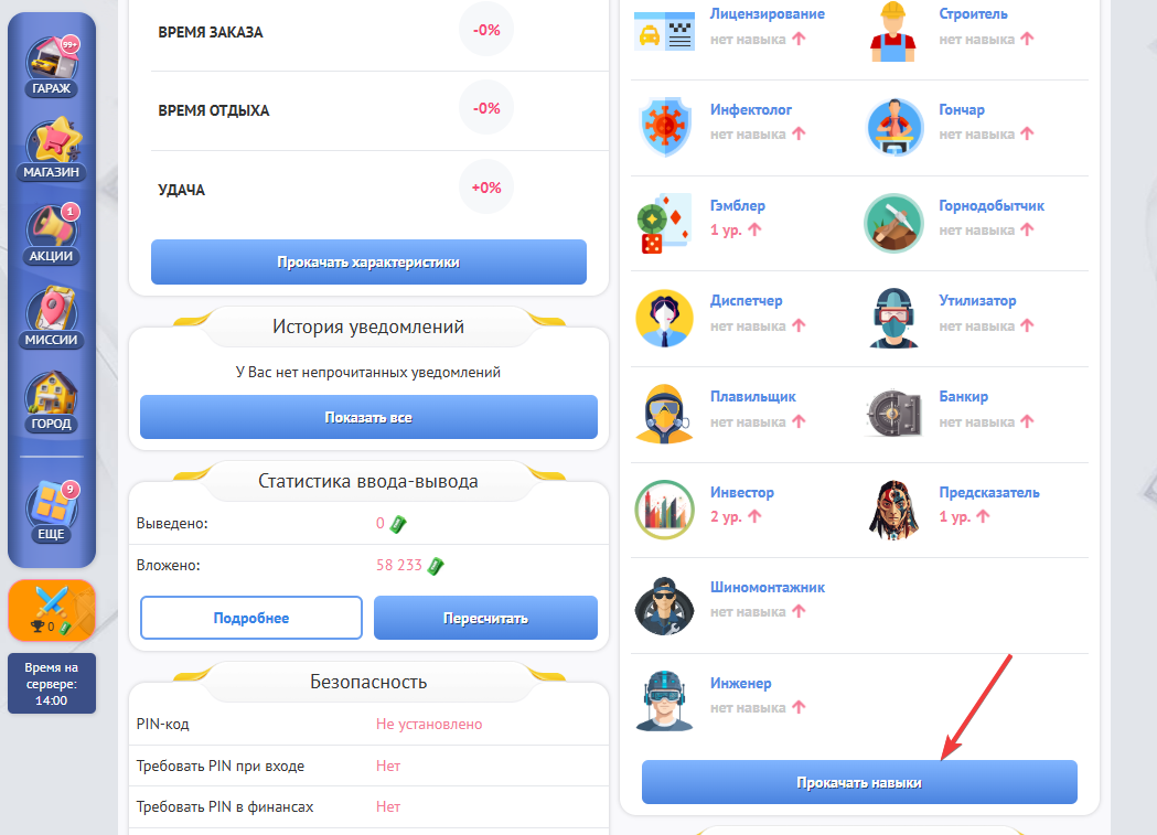 Также за работу в “Дата центре” Ваш навык “Инженер” будет автоматически улучшатся,что поможет Вам больше зарабатывать.