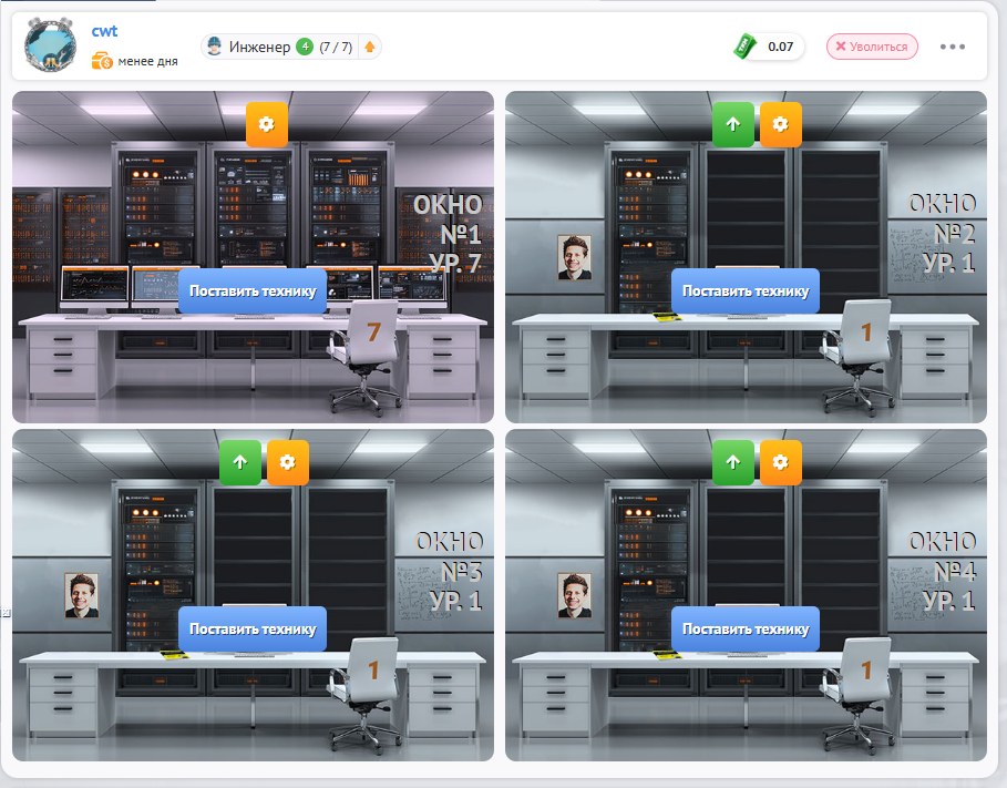Владелец “Дата центра” может ограничивать типы оплаты и уровень обслуживаемой техники в каждом окне, а также выставлять наценку на услугу