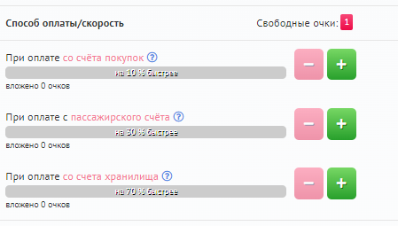 Скорость прохождения зависит от того, сколько очков Вы вложили в тот или иной метод оплаты.